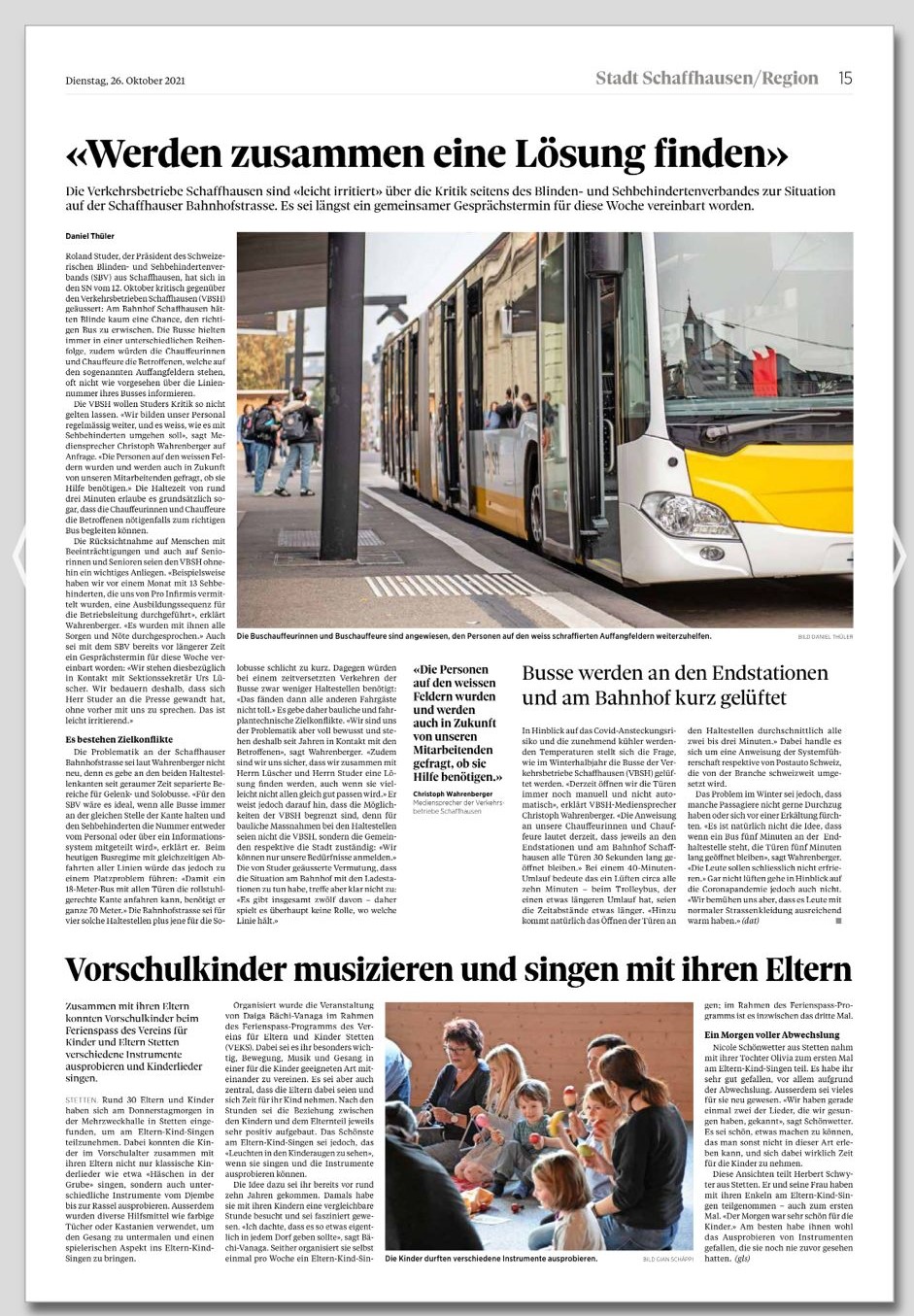 Ferienspass Oktober 2021, Artikel in der SHN