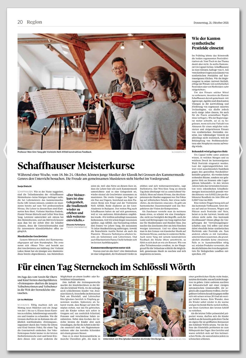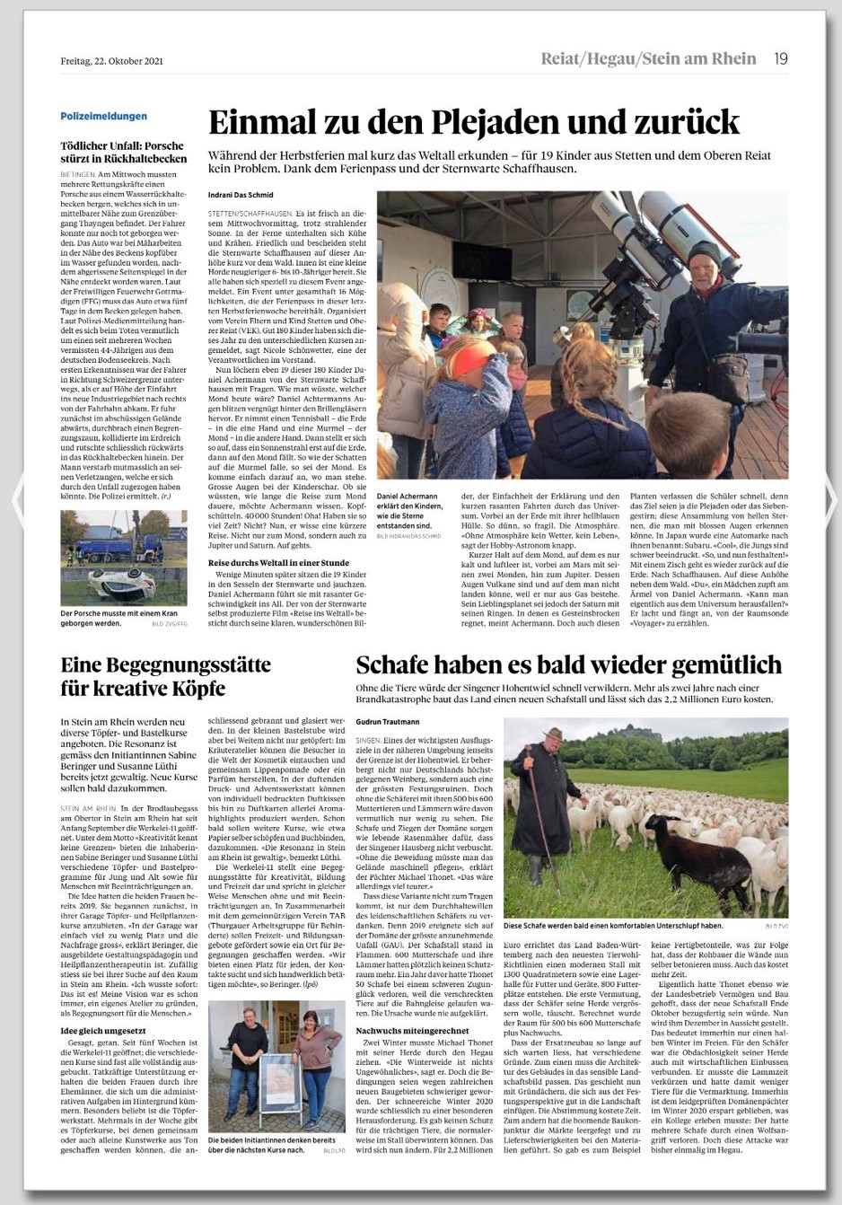 Ferienspass Oktober 2021, Artikel in der SHN